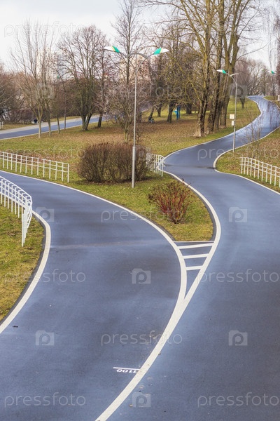 Бег трусцой, ходьба, езда на велосипеде по парковой дорожке. Спорт