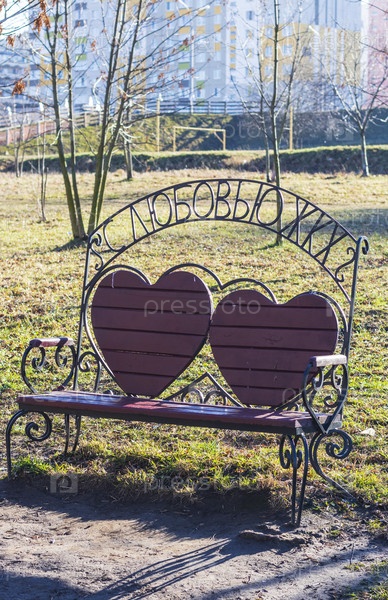 Снимок декоративной скамейки в парке. На открытом воздухе