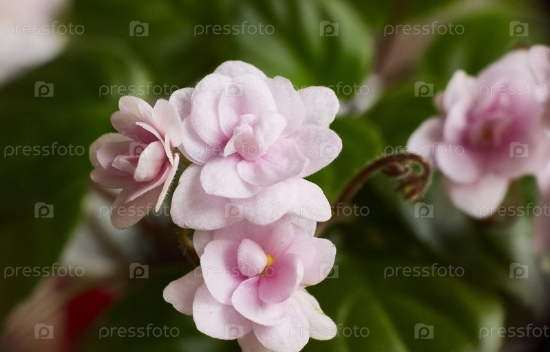 Цветущая розовая африканская фиалка. Сенполия. Избирательный фокус