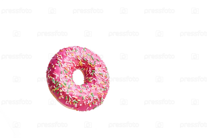 Розовый пончик на белом фоне. Место для текста