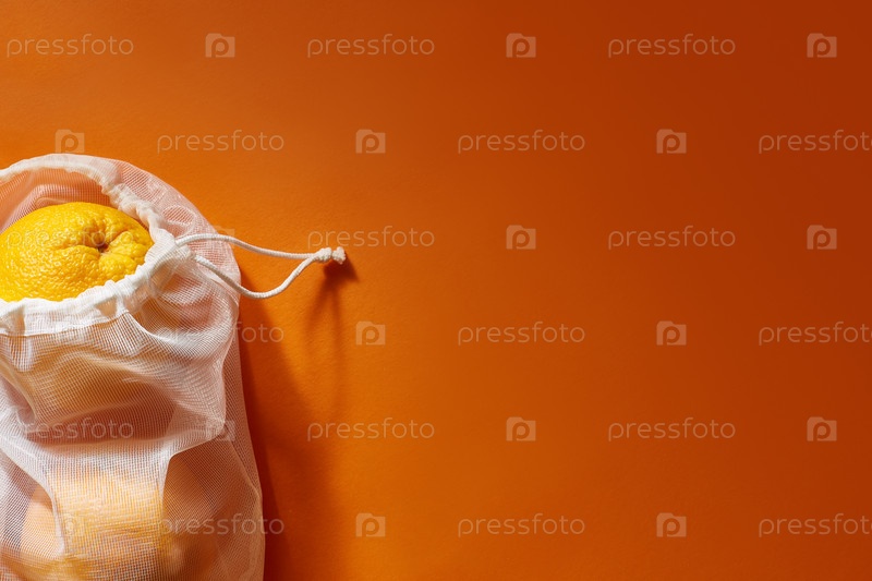 Нулевой отход. Сумка со спелыми апельсинами. Покупки без пластика. Экологически чистый. Copyspace
