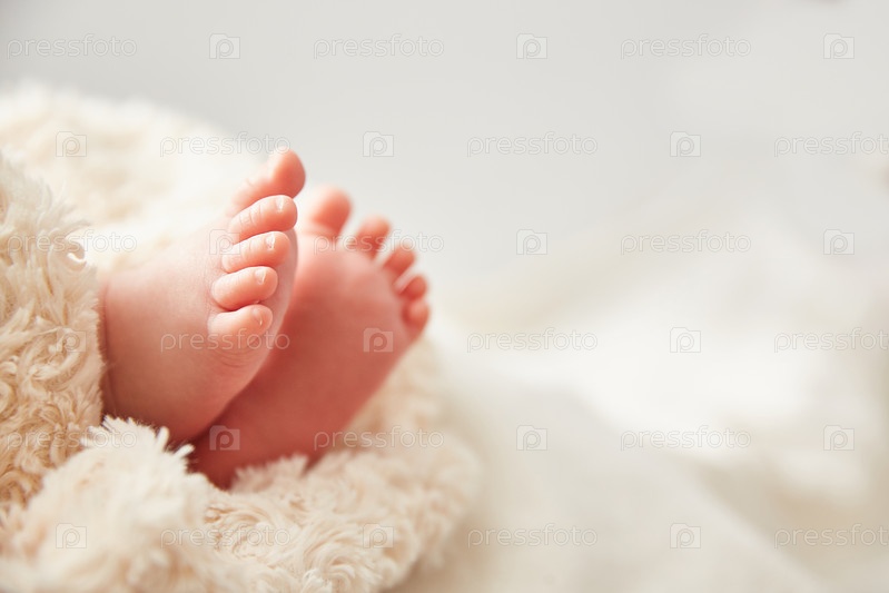 Ноги ребенка в крупном плане. Поздравительная открытка с Copyspace. Концепция семьи