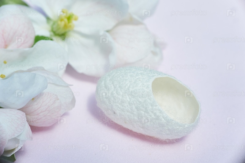 Кокон шелкопряда крупным планом для косметических процедур и цветов