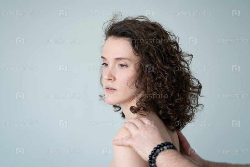 Портрет молодой красивой женщины с вьющимися волосами в студии