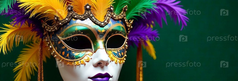 Маска с разноцветными перьями и золотыми украшениями, таинственное искусство карнавала Марди Гра