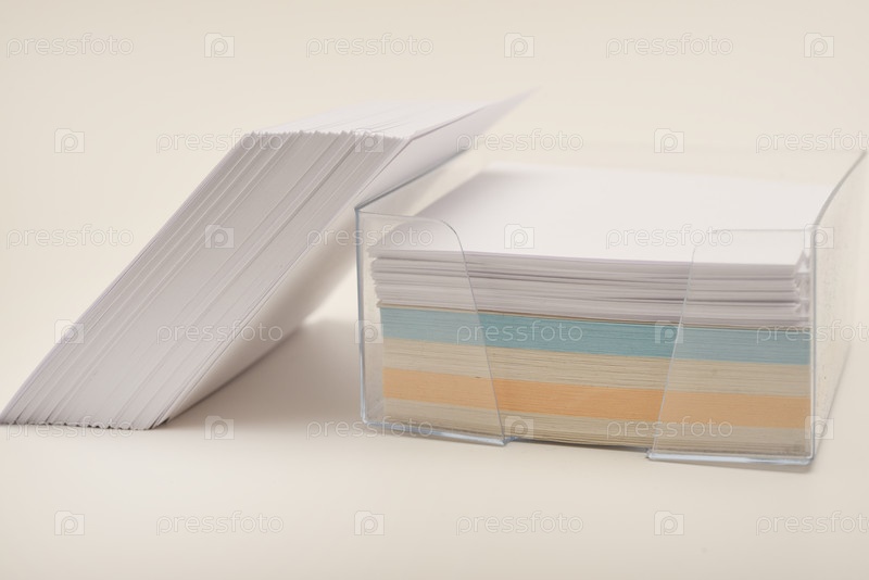 Офисный блок бумаги для заметок. Бумага лежит на столе