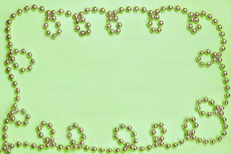 Вид сверху, простой фон с орнаментом из жемчуга по бокам. flatlay copyspace