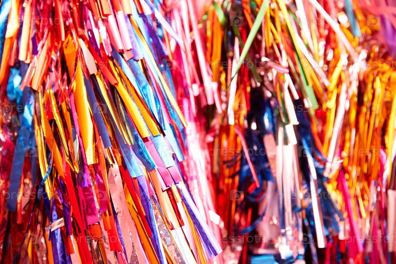 Разноцветный яркий фон из цветных полосок цветной блестящей фольги