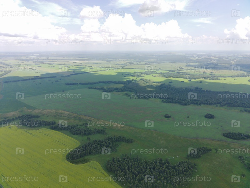 Съемка из квадрокоптера. Поля, луга и лесные окопы, лето. Россия, Сибирь, Новосибирская область. Quadrotor filming. Fields, meadows and forest edges, summer. Russia, Siberia, Novosibirsk region. Фотография с азиатского взгляда。 田野, пастбища и края леса, л