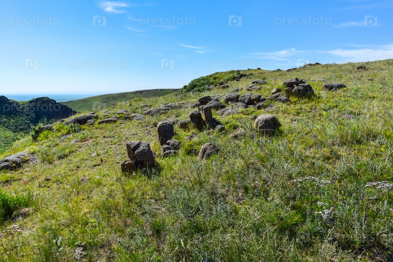 Старые горы, Сахсыр, Хакасия, небо, трава, деревья, горы