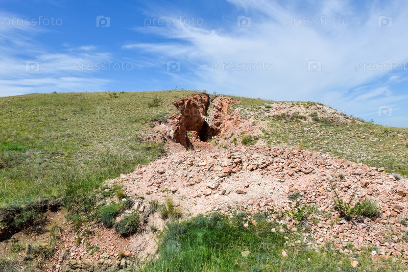 Старые шахты, Сахсыр, лето, небо, горы, Хакасия