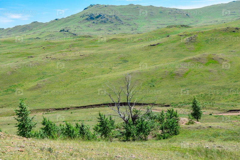Старые горы, Сахсыр, Хакасия, небо, трава, деревья, горы
