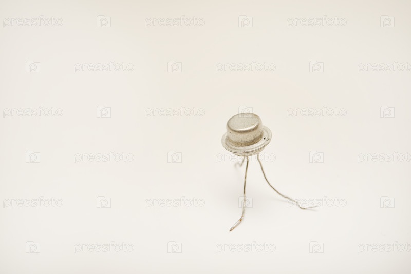 Металлические транзисторы на белом фоне. Радиодеталь с тремя выходами