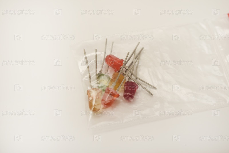 Разноцветные светодиоды. Старые светодиоды на белом фоне