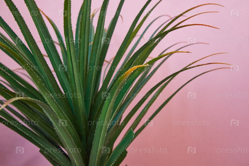 Колючее алоэ крупным планом на розовом фоне. Модная концепция тропических кактусов