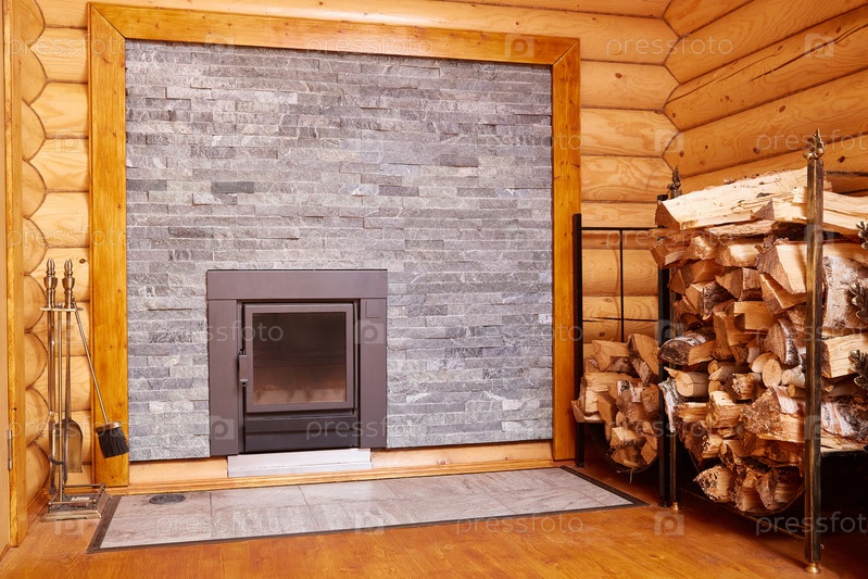 Печь в доме с поленницей