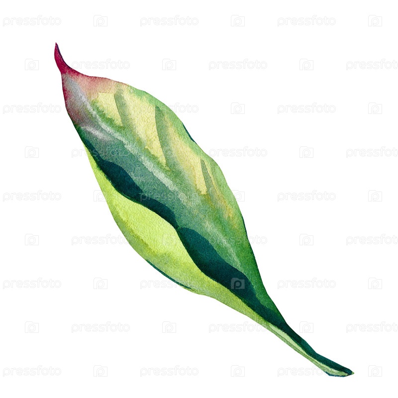 Ботанический рисунок зеленого листа. Акварельная иллюстрация листа на белом фоне. Изолированный