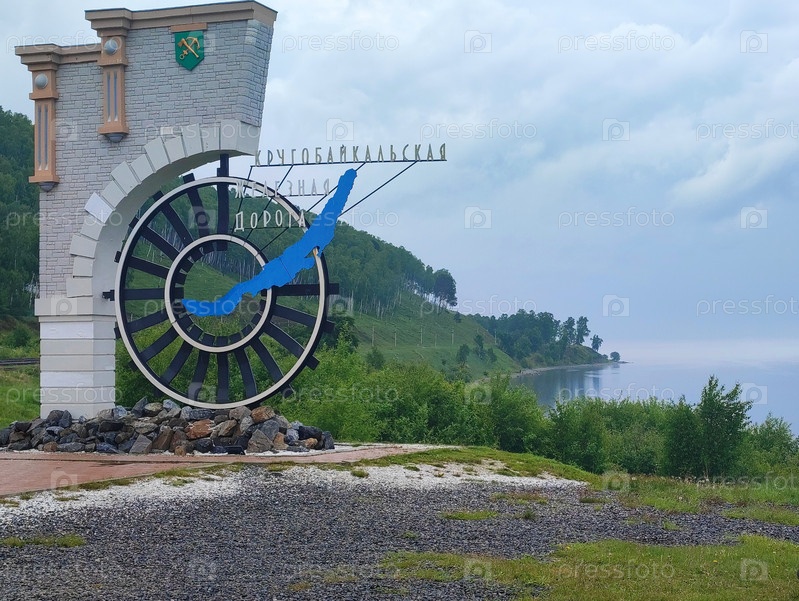 Стелла 'Кругобайкальская железная дорога' рп. Култук, Слюдянский район, Иркутская область, Россия, озеро Байкал, КБЖД. Стела 'Circum-Baikal Railway' rp. Kultuk, Slyudyansky district, Irkutsk region, Russia, Lake Baikal, KBZHD