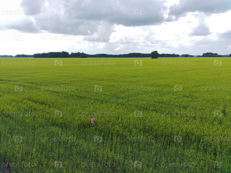 Поле рапса, снято с квадрокоптера. Россия, Сибирь, Новосибирская область