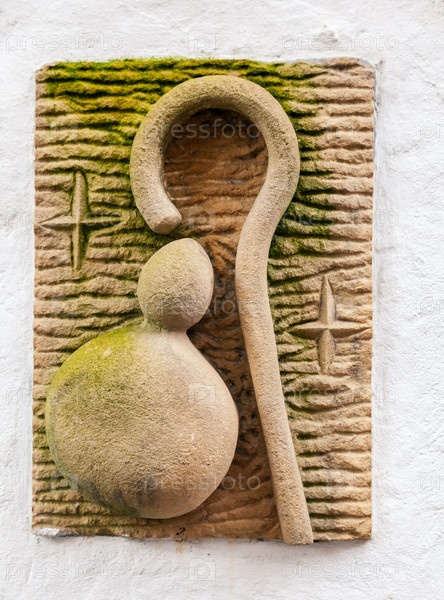 Каменная резьба в кельтском стиле, изображающая посох паломника на пути Камино де Сантьяго