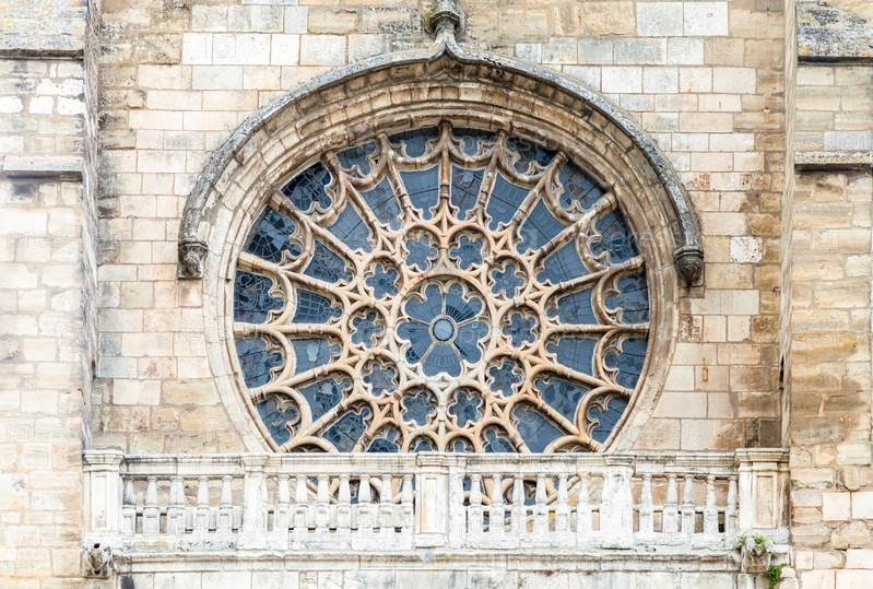 Изысканное розеточное окно демонстрирует уникальные узоры в церкви Сан-Эстебан в Бургосе