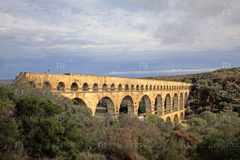 Великолепный Пон-дю-Гар простирается среди пышной растительности во Франции