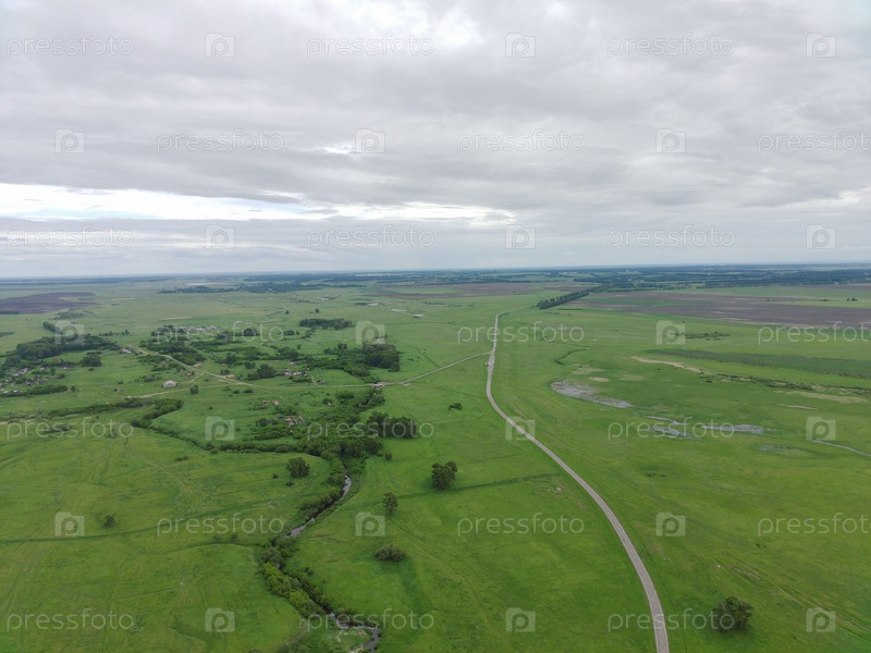 Вид на деревню с высоты птичьего полета, лето. Алтайский край. Россия