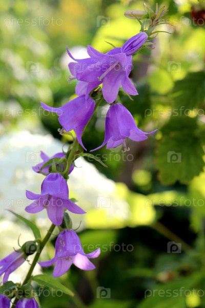 Соцветие садовых колокольчиков в саду в тени