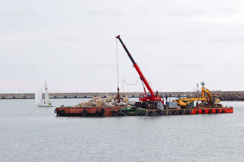 Сочи.Строительство национального острова.БАРЖА, КРАН, ПЛАСКОУТ, МЫНИ.Сочи.Конструирование большого острова.Баржа, кран, гильза, камни
