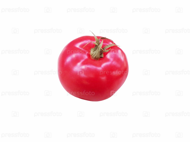 Сочный спелый помидор с зеленым ростком на белом фоне