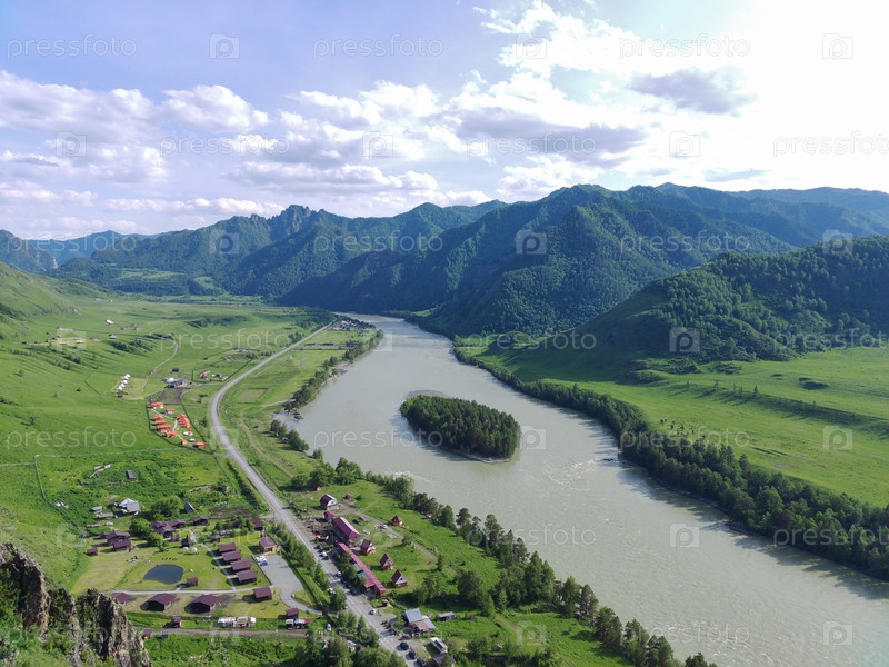 Ущелье Че-Чкыш, смотровая площадка на реку Катунь и горы. Чемальский район, Республика Алтай, Россия
