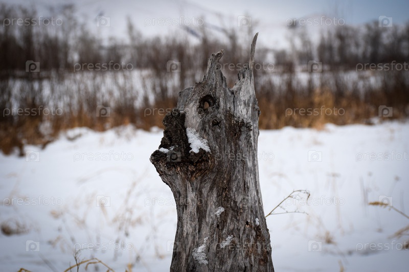 Старый пень в снегу