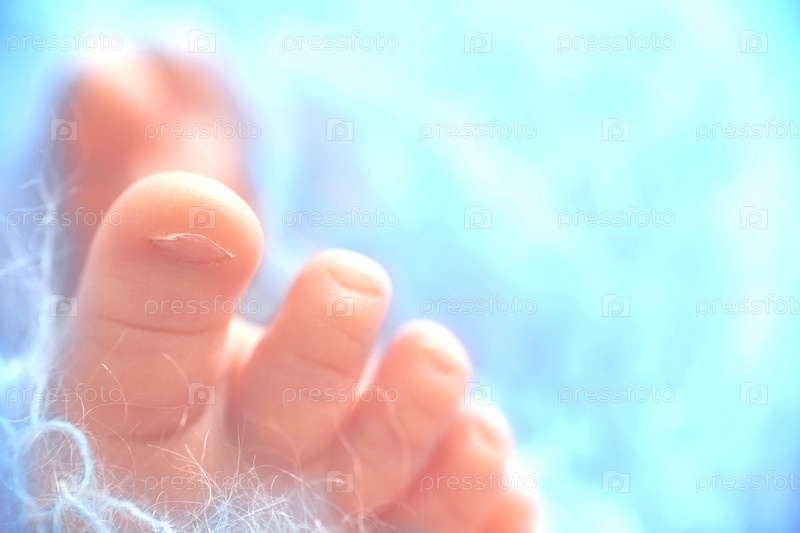 Крупный план стопы новорожденного мальчика. Копия пространства