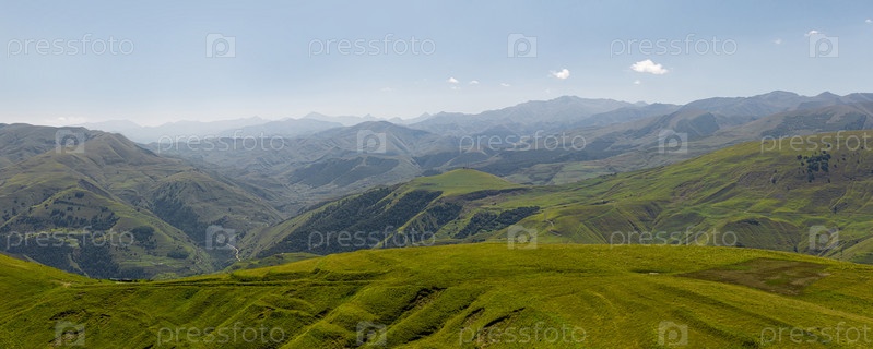 Захватывающие горные пейзажи, луга на переднем плане, скалы вдалеке