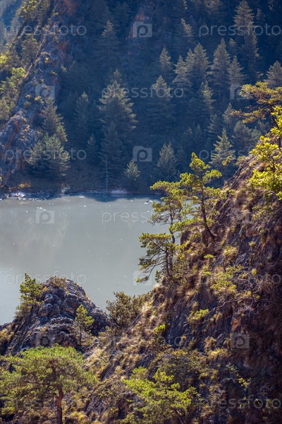 Озеро в горах. Фантастическая горная природа, каньоны и луга