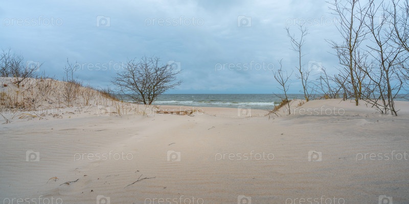 Лес на побережье Балтийского моря в пасмурный день осенью