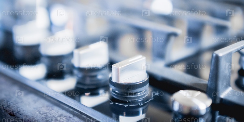 Кухонная газовая плита со стеклянной столешницей крупным планом
