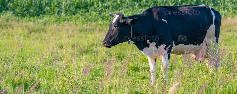 Коровы пасутся на сочном лугу в летний день