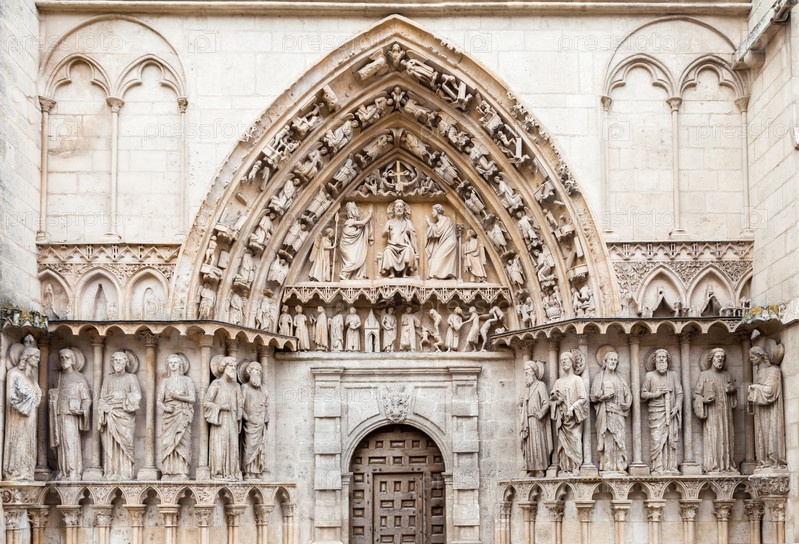 Готическая архитектура собора в Бургосе, Испания, демонстрирует сложную резьбу по камню