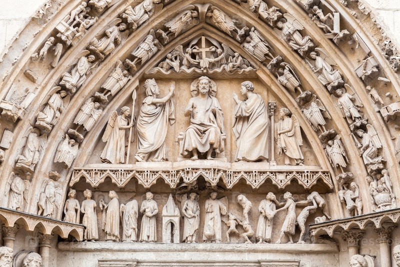 Детализированный каменный фасад собора в Бургосе, Испания, с его готическими произведениями искусства