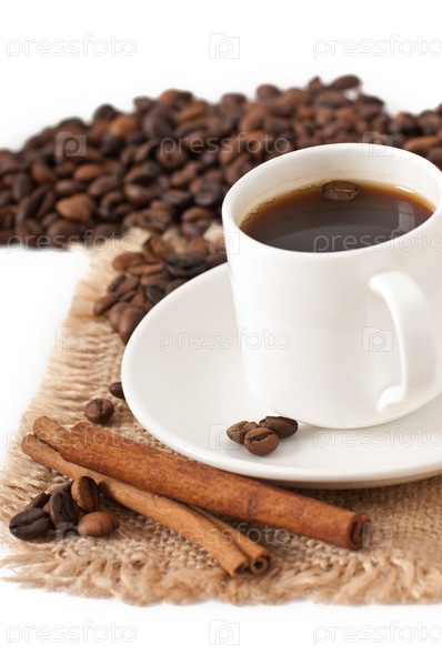 Чашечка кофе и зерна