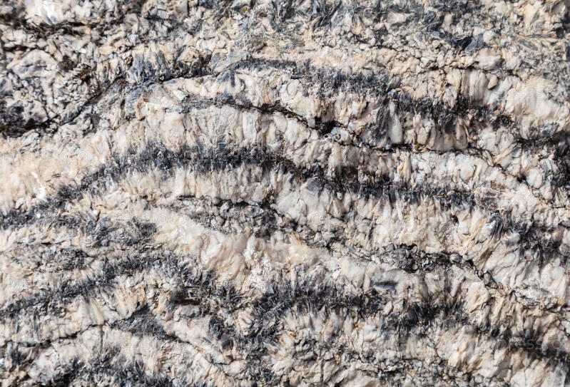 Уникальные минеральные узоры создают поразительные текстуры в горных породах, освещенных солнечным светом, демонстрируя мастерство природы