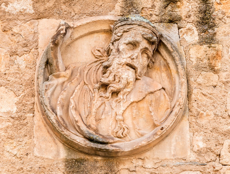 Подробная рельефная скульптура пожилого мужчины занимает видное место на выветренной каменной стене Университета Саламанки