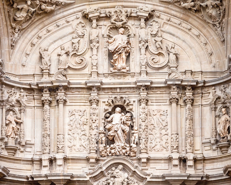 Искусно выполненные скульптуры украшают внешний вид собора Санта-Мария-де-ла-Редонда-де-Логроно