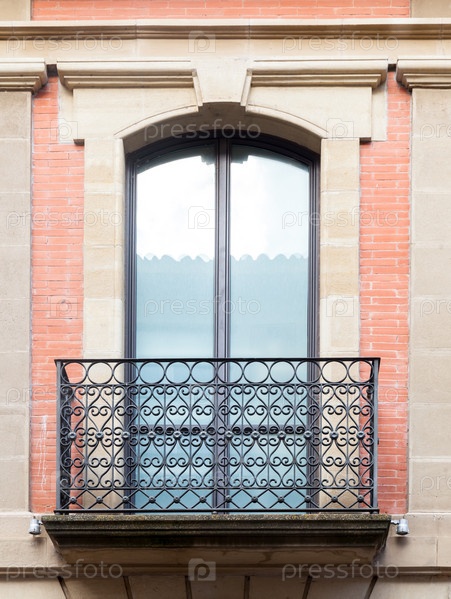 Очаровательный балкон с детальными металлическими перилами в сочетании со светло-голубым окном