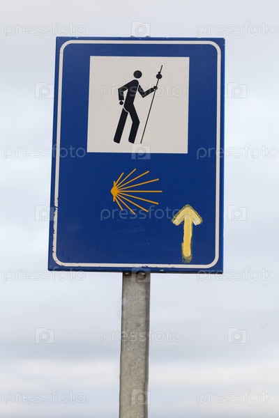 Указатель указывает паломникам путь по Камино де Сантьяго