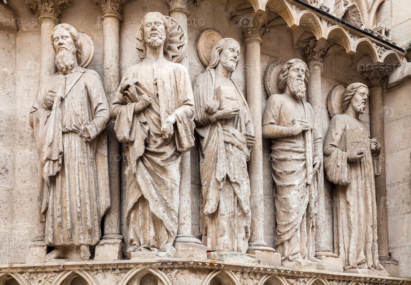 Каменные скульптуры святых, украшающие арки Бургосского собора в Испании