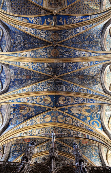 Вид на потрясающий расписной потолок собора Сент-Сесиль, запечатлевший яркие цвета и замысловатые узоры