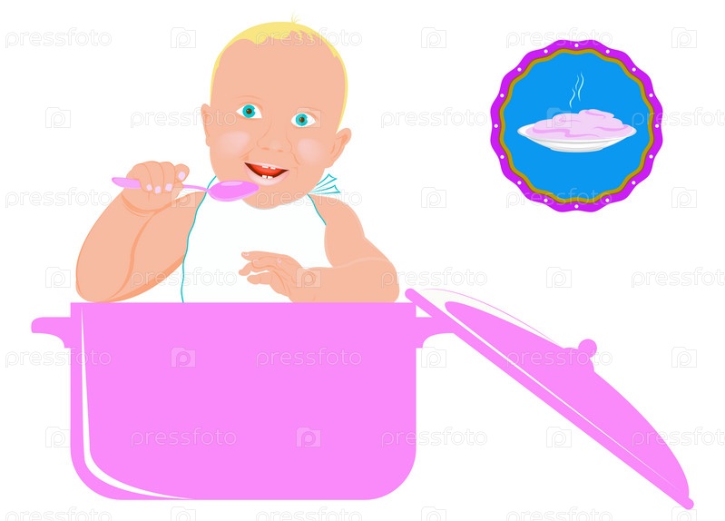 Малыш с ложкой на абстрактном розовом фоне