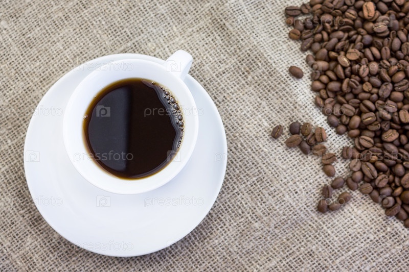 Чашка кофе в мешковине